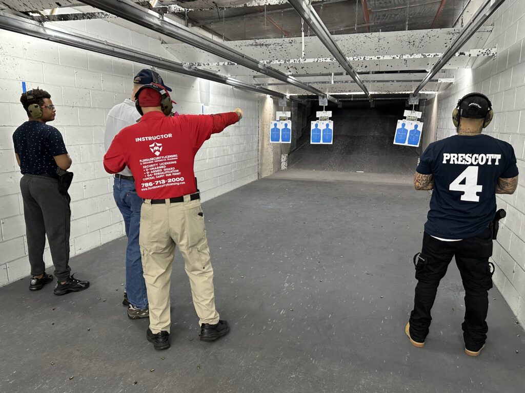 The course includes 28 hours of classroom & range instruction, live fire range qualification consisting of 3-cycles of 48 rounds, and covers Florida laws, firearm safety, and use-of-force protocols.